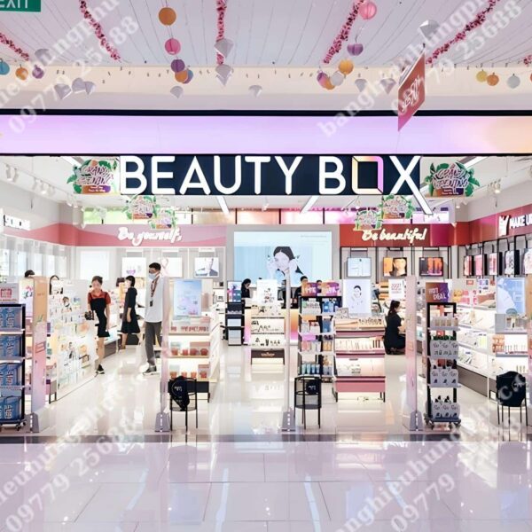 Biển hộp đèn cửa hàng mỹ phẩm là biển quảng cáo có đèn chiếu sáng bên trong hoặc xung quanh, giúp nổi bật cả ngày và đêm. Chúng giúp tăng độ nhìn thấy, thu hút sự chú ý, nâng cao thẩm mỹ, hoạt động hiệu quả suốt ngày và cải thiện nhận diện thương hiệu.