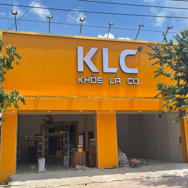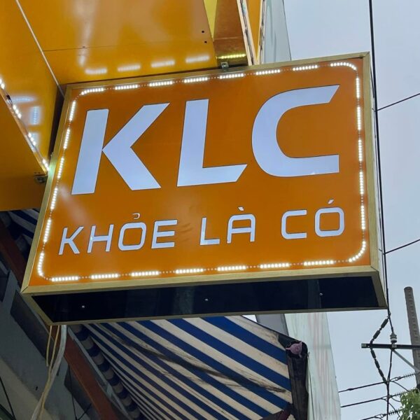Thiết kế này không chỉ làm nổi bật thương hiệu KHỎE LÀ CÓ (KLC) mà còn giúp tăng độ nhận diện trong không gian đô thị sôi động. Các hạng mục quảng cáo đi kèm đồng bộ với bảng hiệu, đảm bảo một phong cách nhất quán và chuyên nghiệp, khẳng định uy tín và giá trị của cửa hàng trong lòng khách hàng.