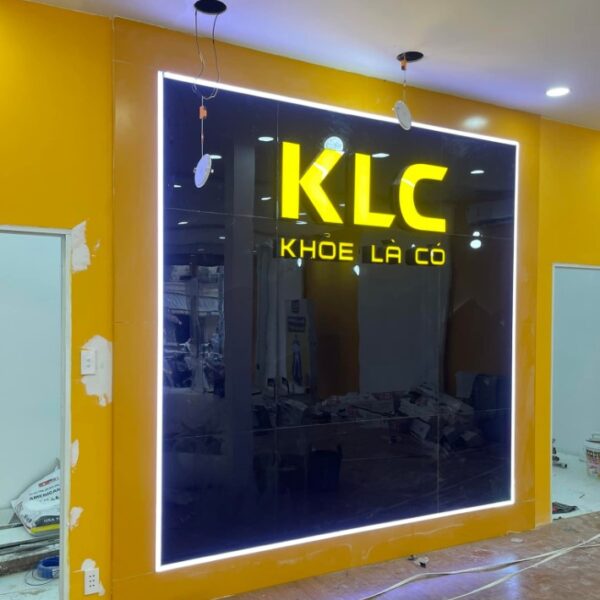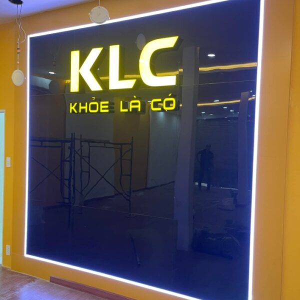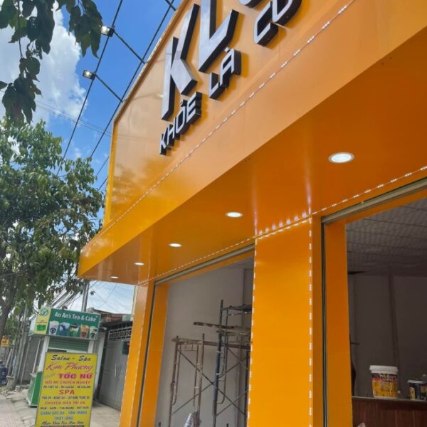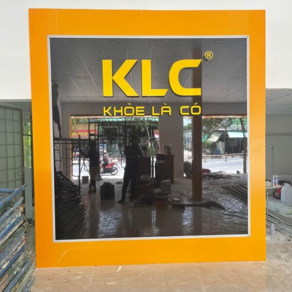 Hưng Phúc đã thiết kế và thi công bảng hiệu cùng các hạng mục quảng cáo cho cửa hàng KHỎE LÀ CÓ (KLC) với tông màu vàng đậm chủ đạo, tạo nên một diện mạo rực rỡ và nổi bật. Màu vàng đậm mang đến sự ấm áp, năng động và thu hút, rất phù hợp để tạo ấn tượng mạnh mẽ với khách hàng. Chữ nổi mica sáng mặt càng làm tăng thêm vẻ nổi bật và giúp bảng hiệu dễ nhận diện, đặc biệt vào buổi tối.