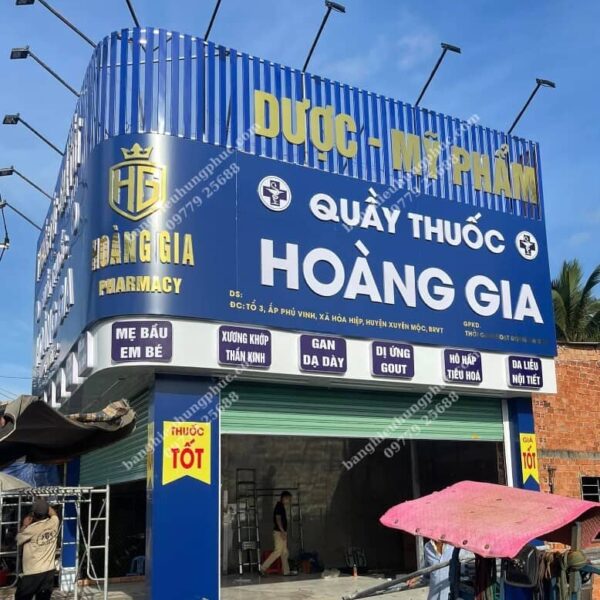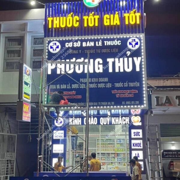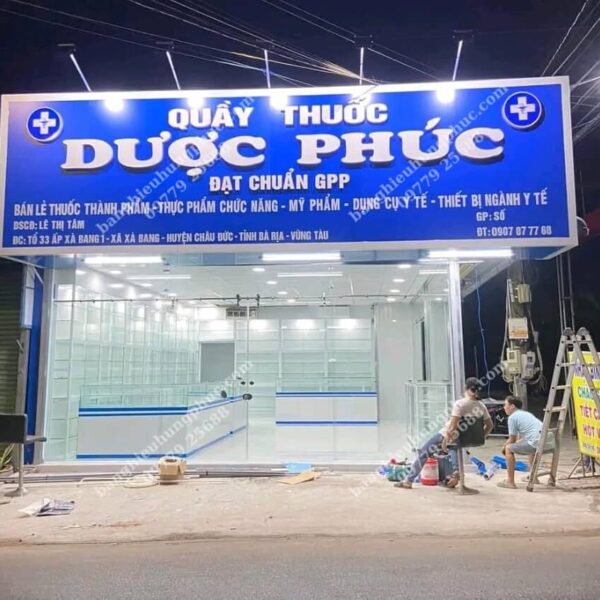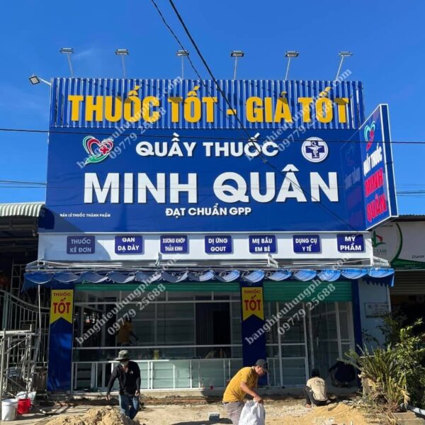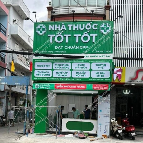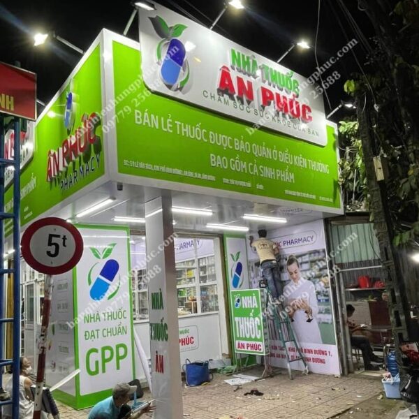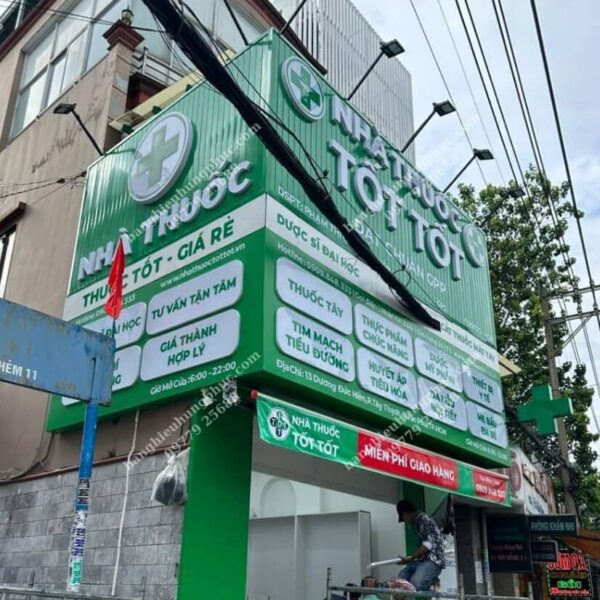 - Chúng tôi hiểu rằng mỗi bảng hiệu nhà thuốc không chỉ là công cụ quảng cáo mà còn là biểu tượng nhận diện thương hiệu, do đó, chúng tôi luôn chú trọng vào yếu tố thẩm mỹ và độ bền của sản phẩm. Từ chất liệu đến kỹ thuật thi công, tất cả đều được lựa chọn kỹ lưỡng để tạo ra những bảng hiệu không chỉ đẹp mắt mà còn có tuổi thọ cao, bền vững trước các yếu tố thời tiết khắc nghiệt.