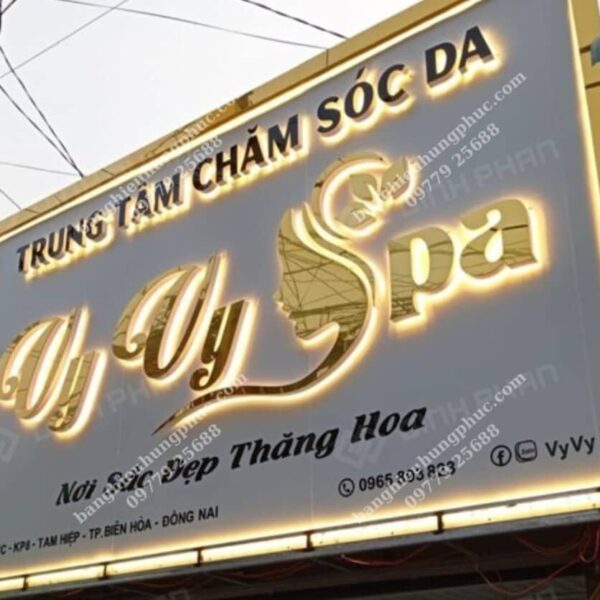 Bảng hiệu spa là yếu tố quan trọng trong việc tạo ấn tượng đầu tiên và thu hút khách hàng đến với cơ sở làm đẹp. Một bảng hiệu spa không chỉ đơn thuần là biển quảng cáo, mà còn là đại diện cho phong cách và chất lượng dịch vụ mà spa cung cấp. Với thiết kế tinh tế và trang nhã, bảng hiệu spa giúp khẳng định thương hiệu, tạo không gian thư giãn và chuyên nghiệp, đồng thời hướng dẫn khách hàng dễ dàng nhận diện và tìm đến spa.