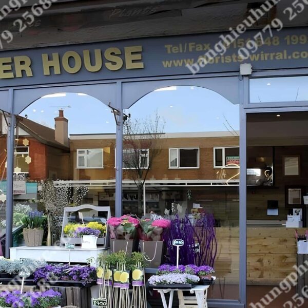 Biển hiệu chữ nổi là loại biển hiệu được thiết kế với các chữ cái hoặc hình ảnh nổi bật lên so với nền biển, tạo nên hiệu ứng 3D bắt mắt. Chữ nổi có thể được làm từ nhiều chất liệu khác nhau như mica, nhôm, inox, hoặc gỗ, tùy theo phong cách và yêu cầu của shop hoa. Loại biển này thường được kết hợp với đèn LED để chiếu sáng, giúp biển hiệu trở nên rực rỡ và thu hút cả ban ngày lẫn ban đêm. Thiết kế chữ nổi mang lại vẻ sang trọng và chuyên nghiệp, giúp shop hoa tạo ấn tượng mạnh mẽ và dễ dàng nhận diện thương hiệu trong lòng khách hàng. Chữ viết cần được gia công tỉ mỉ, sắp xếp hợp lý và kết hợp hài hòa với màu sắc của nền biển để đạt hiệu quả thẩm mỹ cao nhất.