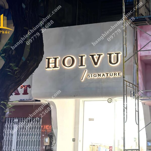 - Biển LED hắt sáng: Sử dụng đèn LED chiếu sáng từ phía sau hoặc bên trong, thường kết hợp với các chất liệu như mica hoặc inox để tạo hiệu ứng chiếu sáng ấn tượng.