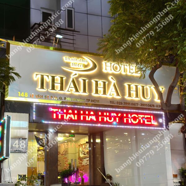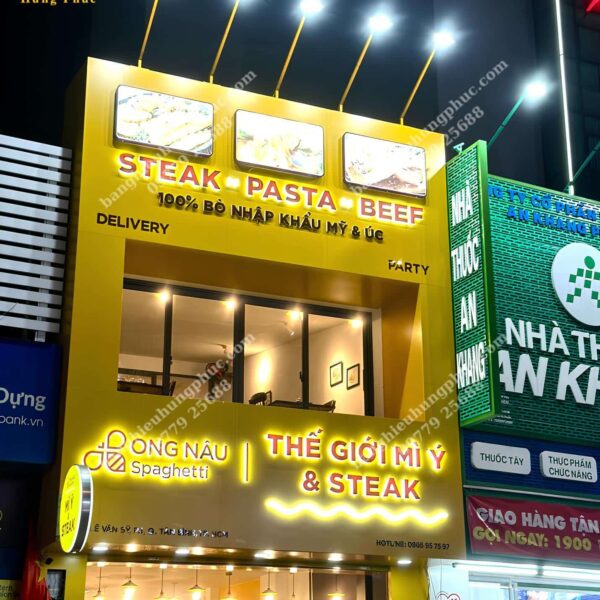 - Biển LED chữ nổi: Được làm từ các chữ hoặc biểu tượng nổi lên bề mặt, kết hợp với đèn LED bên trong hoặc xung quanh để tạo hiệu ứng chiếu sáng.