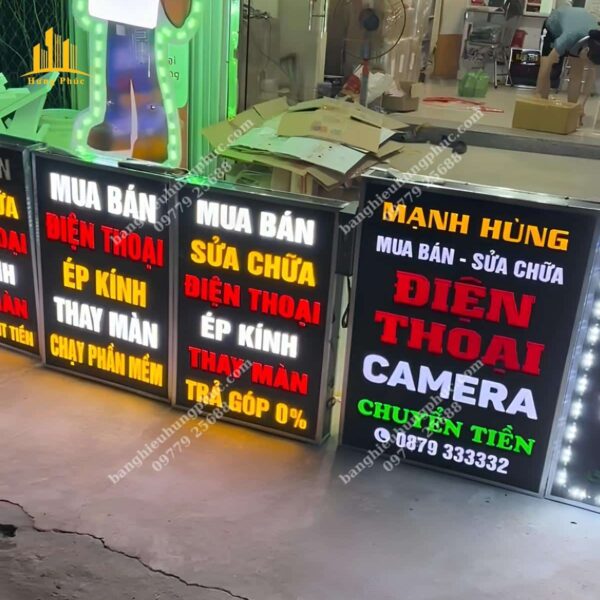 - Thiết kế sáng tạo và độc đáo: Bảng hiệu Hưng Phúc luôn chú trọng đến sự sáng tạo trong từng thiết kế, mang đến những biển vẫy có phong cách riêng, giúp cửa hàng điện thoại của bạn nổi bật và thu hút khách hàng.