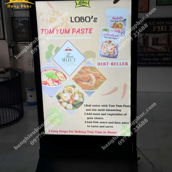 | Biển vẫy lẩu nướng bằng hộp đèn LED | Từ 1.000.000 đến 4.000.000 | Khung nhôm, kính cường lực/mica, đèn LED tích hợp | 2 – 4 ngày làm việc |