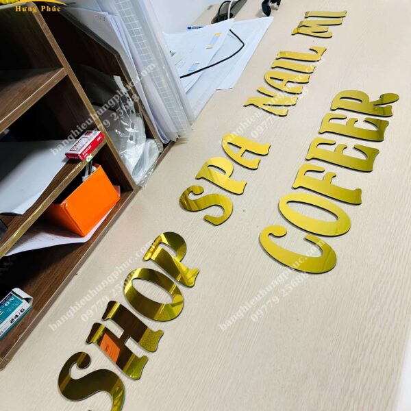 - Quảng cáo thương hiệu: Nhiều doanh nghiệp lựa chọn chữ Alu gương vàng cho logo hoặc tên thương hiệu của mình tại các cửa hàng hoặc trụ sở văn phòng, vừa để gây ấn tượng với khách hàng vừa để thể hiện sự chuyên nghiệp.