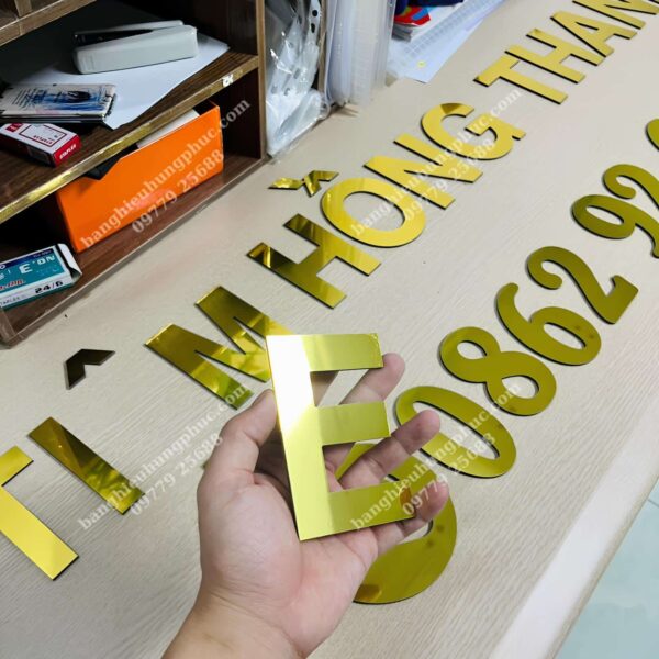 - Chất lượng sản phẩm: Hưng Phúc cam kết sử dụng vật liệu cao cấp, đảm bảo chữ Alu gương vàng bền bỉ, đẹp mắt và không bị oxy hóa theo thời gian.