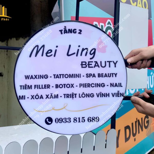 - Chất liệu mica cao cấp, chịu được nắng mưa, va đập.